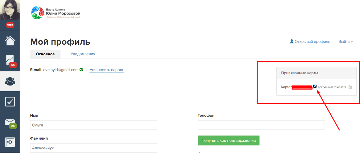Чтобы убрать возможность автоматической оплаты, но сохранить номер карты в профиле, снимите галочку.